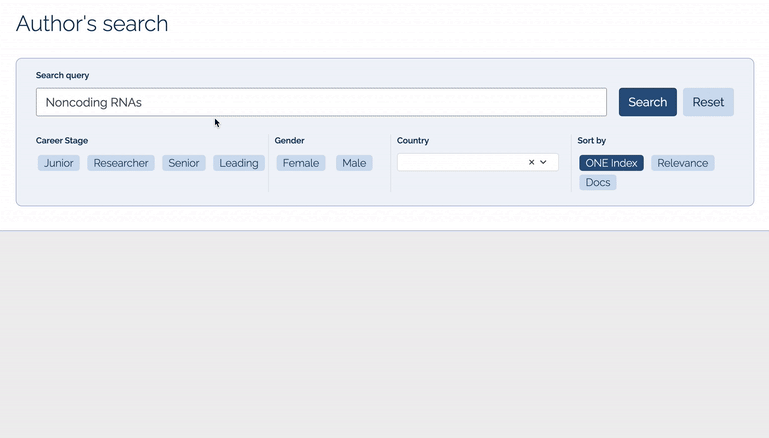 - Custom Filters: drill down into specific researcher groups by gender, career stage, or other criteria.